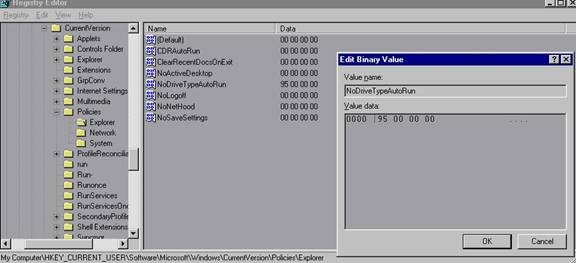 In the Edit Binary Value screen you must have 0000 95 00 00 00